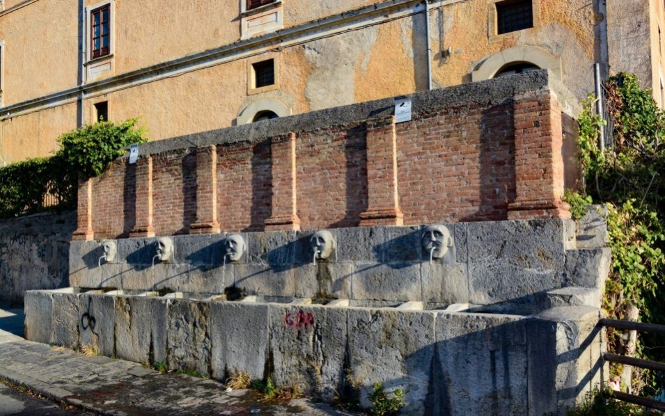 Vicinissima al castello è collocata questa fontana monumentale con cinque canali, con cinque mascheroni, ed è nominata: “fontana di San Giuseppe della Porta della Catena.