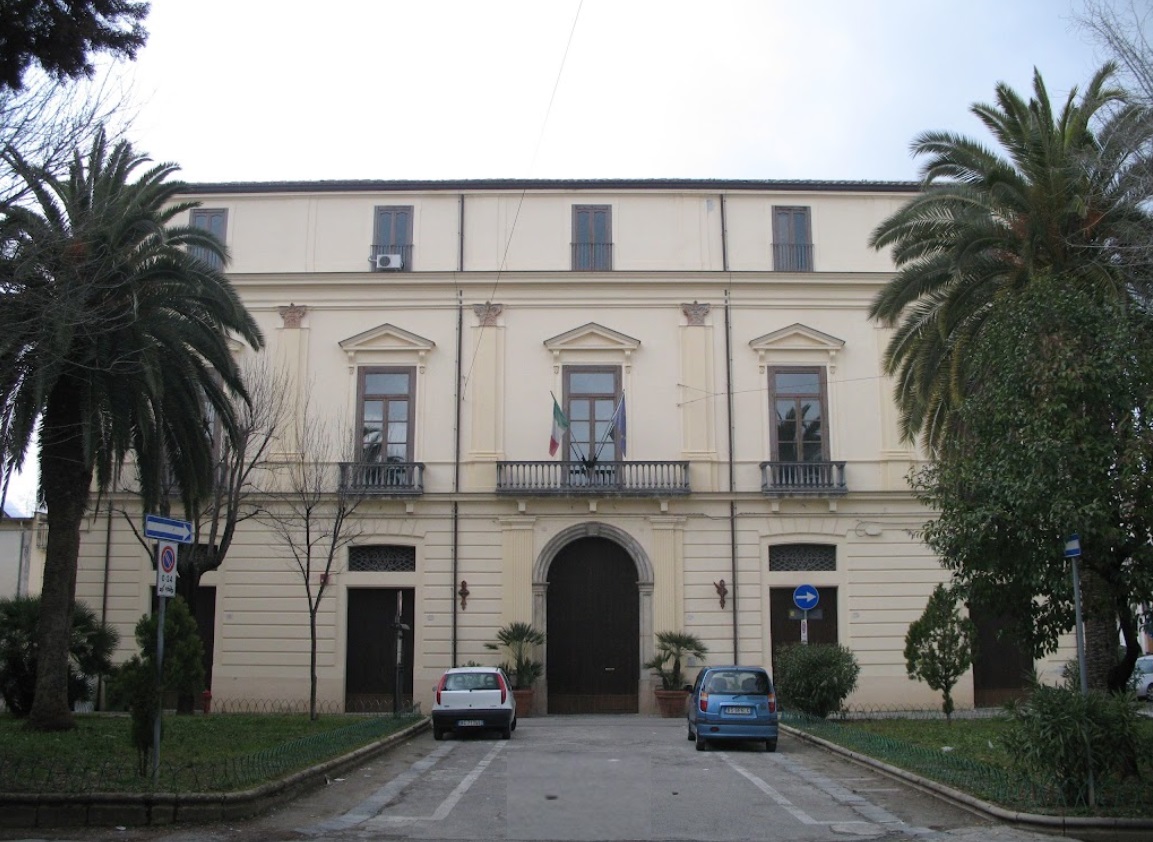La facciata sul corso uniforma i diversi caseggiati compongono l'edificio e ospita tre lapidi che ricordano rispettivamente i patrioti del 1799, i Volontari Garibaldini dal Colonnello Pace e, al centro, quella dedicata a Garibaldi in occasione della sua morte avvenuta nel 1886.