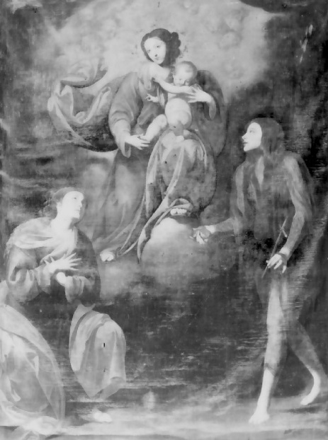 Altra opera dipinta ad olio su tela ritrae la Madonna col Bambino tra i santi Gregorio e Rocco; la sua forma è rettangolare perché adattata agli stucchi dell’altare; Il dipinto ascrivibile al sec. XVIII, anche se non firmato, è da attribuire a Genesio Gualtieri da Mormanno che, nel 1777, dipinse anche due tele in Santa Maria del Castello, con le quali mostra evidenti analogie e somiglianze.